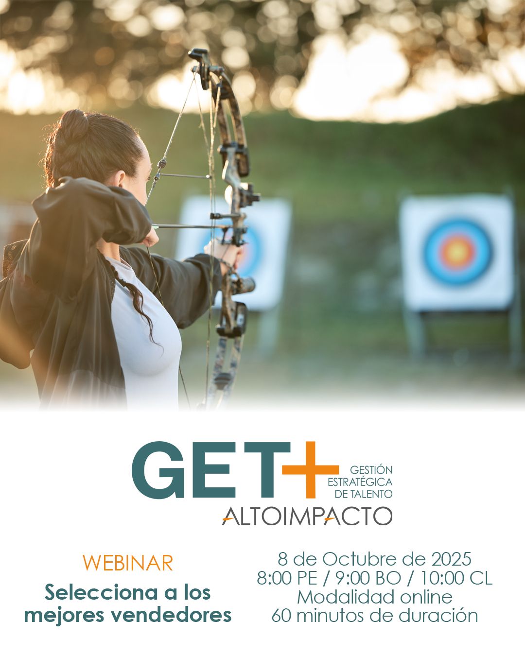 El próximo miércoles 08 de octubre a las 11:00 am Chile / 10:00 am Bolivia / 9:00 am Perú, se realizará nuestro webinar "Selecciona a los Mejores Vendedores".